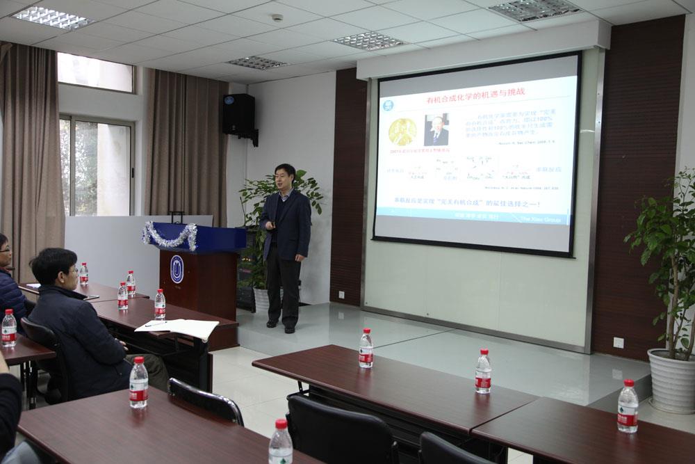 3月16日下午, 华中师范大学化学学院肖文精院长在金沙集团1862cc成色校本部HA楼102报告厅为我校师生作了一场题为"杂环合成中的串联反应策略"的学术报告,该报告是理学院当代科学前沿讲坛第235讲。