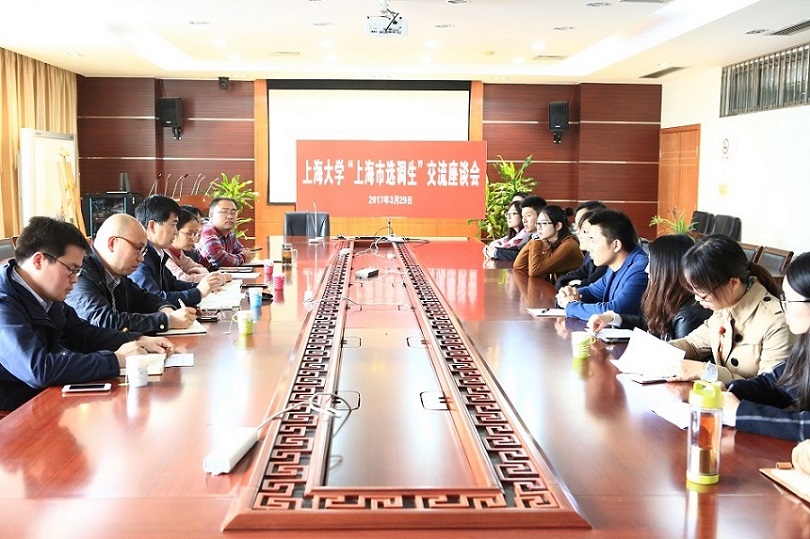 3月29日下午,金沙集团1862cc成色“上海市选调生”交流座谈会在宝山校区B 楼417会议室举行。校组织人事部副部长张洁、招毕办副主任傅新华、法学院党委副书记卢欣等及历届选调生代表参加了座谈会。