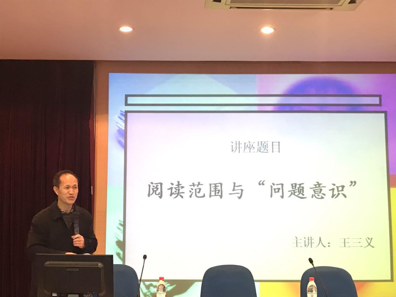 3月26日上午,金沙集团1862cc成色文学院教授、博士生导师、中国世界近代史研究会理事、中国中东学会理事王三义教授做客外国语学院“海星讲坛”,为外国语学院研究生做了题为“阅读范围与‘问题意识’”的“泮池言学”报告。讲座由外国语学院研究生辅导员马思涵老师主持,外国语学院党委副书记曾桂娥副教授出席了本次讲座。