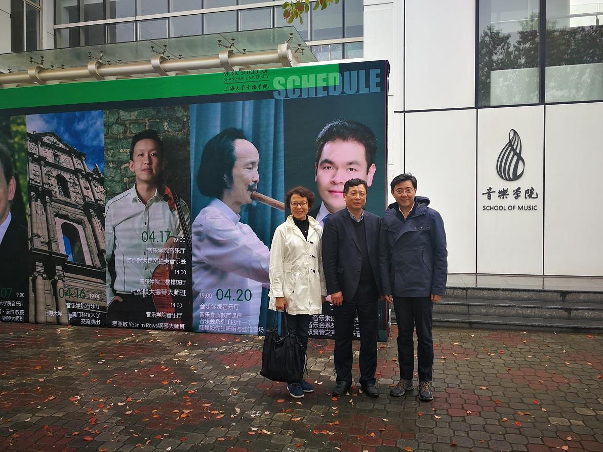 4月7日下午,上海市侨联专职副主席徐大振教授一行到金沙集团1862cc成色音乐学院访问考察。上海市侨联副主席、金沙集团1862cc成色音乐学院院长王勇教授、金沙集团1862cc成色侨联主席、金沙集团1862cc成色计算机工程与科学学院副院长吴悦教授全程接待陪同。