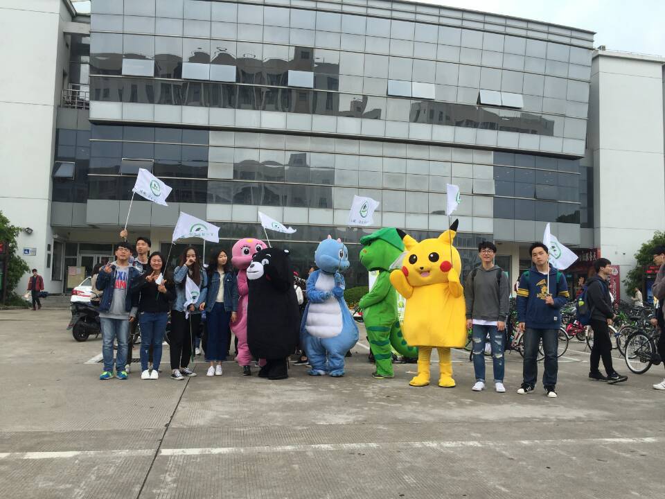 在开幕式的游行活动中,活泼可爱的吉祥物“环环”“化化”吸引了许多人的好奇目光,它们憨态可掬的形象深受大家的喜爱,活泼阳光的模样象征着上大学子们青春朝气的形象。随后进行的玩偶cos小型游行活动通过赠送明信片和彩色气球,也吸引了众多师生对本届环保节的关注,他们感受到了环保节的气息,“低碳,让生活轻一点”的理念也开始深入人心。