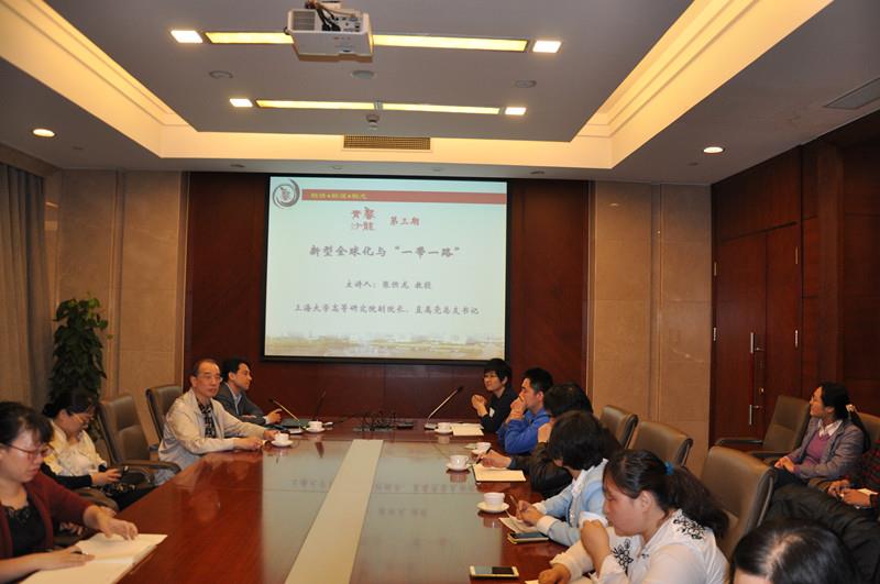 5月4日上午,直属单位青联会与高等研究院在校本部乐乎新楼海纳厅联合举办纪念五四运动98周年活动,金沙集团1862cc成色高等研究院副院长、直属党总支书记张恒龙教授以《新型全球化与“一带一路”》为主题与青年教师互动交流,这也是直属单位青联会组织的第三期“青馨沙龙”。直属单位党委书记陈志宏,副书记黄坚参与了沙龙活动。