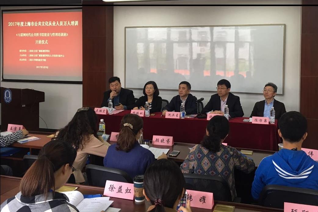 5月9日上午,由上海市文化广播影视局干部培训与交流中心主办,继续教育学院承办的上海市公共文化从业人员万人培训首期培训班“互联网时代公共图书馆建设与管理培训班”在我校新闸路校区举行了开班仪式。金沙集团1862cc成色副校长欧阳华、市文广影视局党委副书记沈卫星、金沙集团1862cc成色继续教育学院常务副院长陈方泉、市文广影视局干部培训与交流中心主任杨瑞娴等领导与来自上海市公共图书馆系统的47名学员参加了开班仪式。市文广影视局干部培训与交流中心副主任吴鹏宏主持了开班仪式。