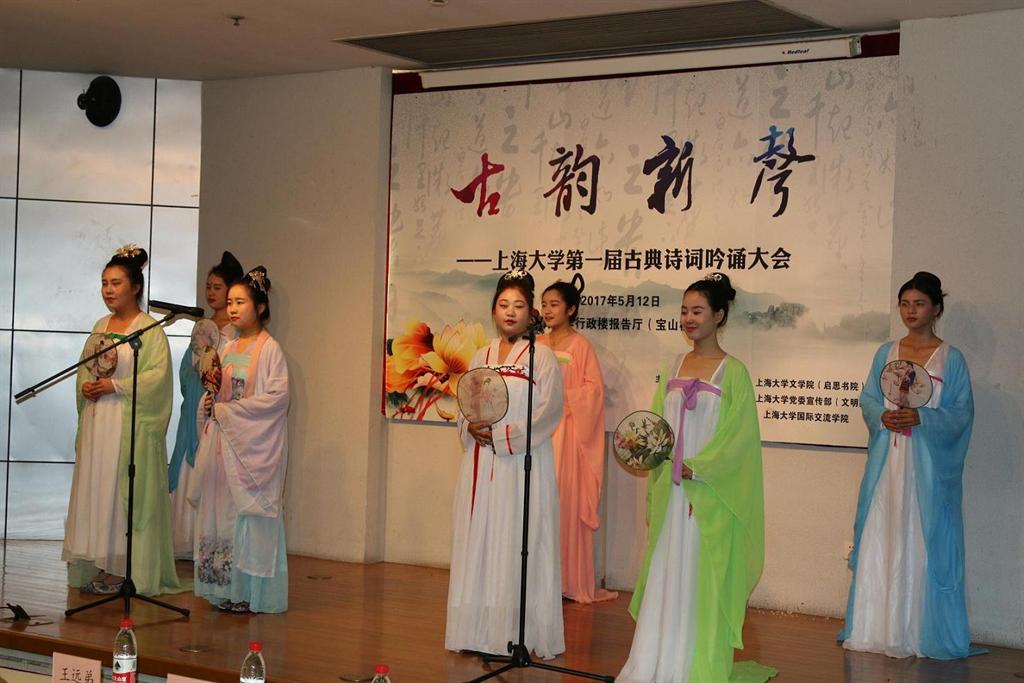 我校部分教师、本科生、研究生、留学生积极踊跃参加、同台献艺。活动形式活泼,师生身着汉服,在美轮美奂的视听冲击下,将观众带入了古典诗词的优美意境。本次活动还吸引了上海市众多喜好吟诵的中小学老师前来参与,特别是闵行区莘松小学同学们的精彩表演,让人欣喜地看到传承传统文化在小朋友心中深深扎根。