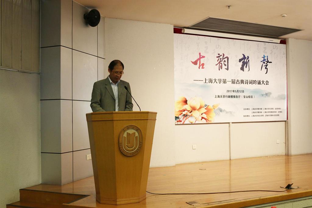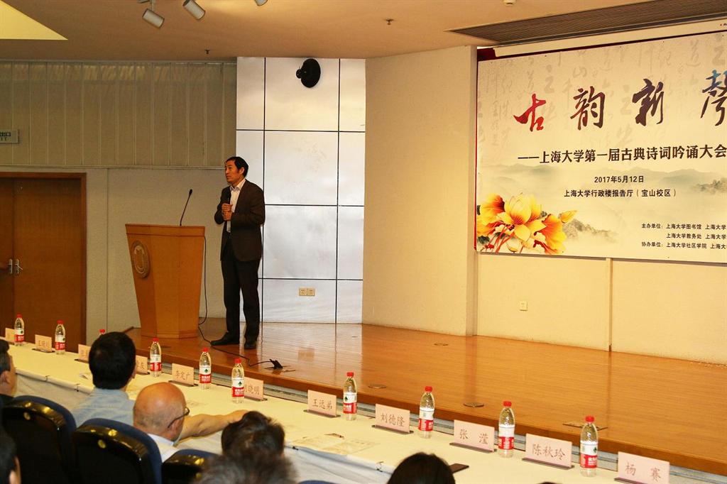 活动开始前,图书馆常务副馆长陆铭首先致辞,他对上海市兄弟高校的著名学者、吟诵专家、校外中小学师生的到来表示热烈欢迎。他指出,吟诵与朗诵、歌唱等声音艺术不同,它是中国古人独特的读书方式,现今已成为一门口口相承的非遗技艺。通过吟诵,我们可以更好地体悟古人的读诗情境,发现古典诗词特有的声韵美学。在全面振兴民族传统文化的背景之下,古典诗词吟诵走进高校校园,就愈发体现出当代意义。