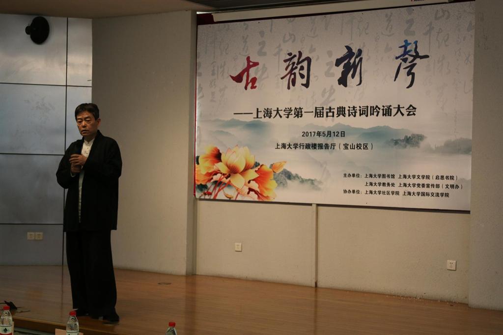 活动现场,各位特邀嘉宾分别以吟诵、吟唱、朗诵等不同方式,精彩展示了的诗词作品魅力,并对节目进行评点,同时还就古典诗词的声音表现艺术,以及当下古典诗词的活动热潮等,发表了独到的看法。与会专家对我校举办的第一届古典诗词吟诵大会表示充分肯定。李定广教授认为举办古典诗词吟诵活动在上海地区的高校中尚属首次,必将对此类文学活动的开展起到引领作用。胡晓明教授对图书馆与文学院发挥各自所长、联合举办文化活动的创新模式,也给予了高度评价。