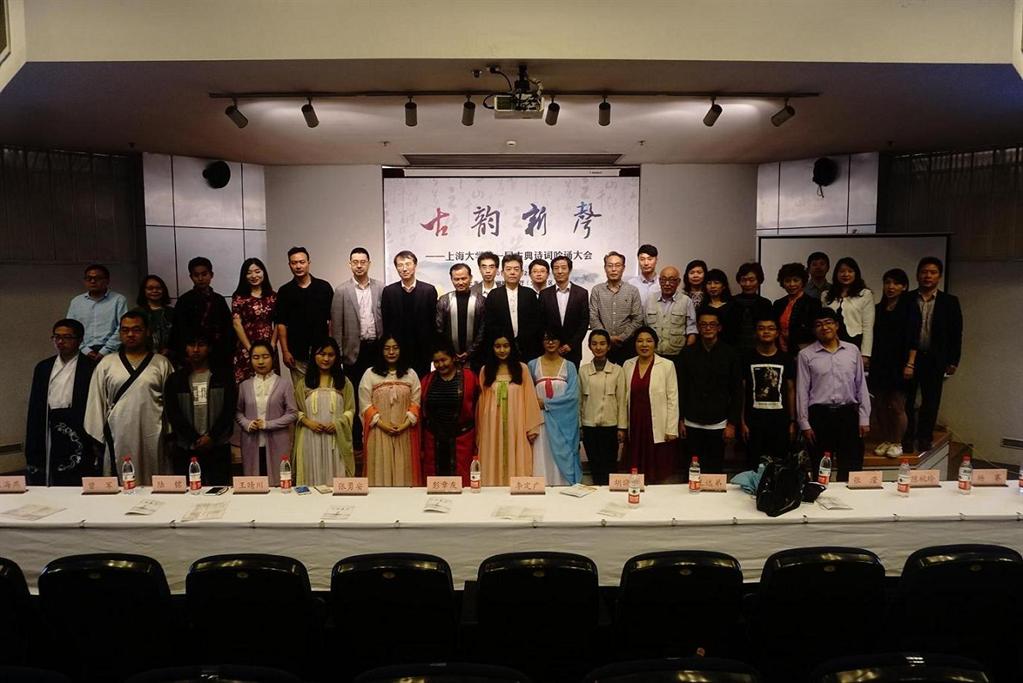 校党委宣传部副部长张滢,文学院院长张勇安、副院长曾军,国际交流学院党委书记王海燕,上海电影学院党委书记王晴川,图书馆直属党总支书记王远弟、副馆长卢志国,社区学院副院长陈秋玲,经济学院副院长尹应凯以及中文系主任黄景春等部门负责人,以及来自校内外的古典诗词吟诵爱好者200余人参加了大会。