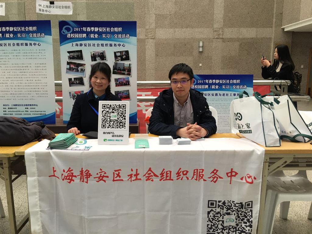 2017年2月22日学院党委在与静安区社会组织服务中心的交流洽谈中,获悉静安区社会组织有招聘毕业生需求,学院就业团队积极主动洽接,经多次与该中心沟通,最终确定于2017年4月7日借金沙集团1862cc成色“文科联盟招聘会”契机为对方提供招聘机会。经过与学校招毕办和文科联盟招聘会主办单位的密切沟通和多次协调,在摊位极度紧张的情况下,为静安区社会服务中心提供了18个摊位26家单位参加此次招聘会。静安区社会组织为助力社会组织发展,静安区社会组织服务中心非常重视此次招聘,该中心理事长王国平、主任蓝之青、党支部书记赵莉一行带队总计50余人来到招聘会现场,社会学院党委书记沈艺老师、党委副书记陈然老师、团委书记刘娇蕾老师、就业专职兼研究生专职卢小芳老师热情接待,积极安排7名志愿者现场对接服务社会组织。招聘会上,招毕办副主任傅新华、学院党委书记沈艺和副书记陈然在招聘会现场与用人单位了解招聘情况,还与参会的毕业生介绍相关工作和实习岗位。此次招聘会,静安区社会组织服务中心共计组织了静安区静安寺、南京西路、北站、芷江西路、大宁路、天目西路、曹家渡等街道(镇)社会组织服务中心以及白领驿家、澜途、锦瑟佳音、绿领等26家社会组织参加,提供岗位63个,经过3个小时的交流,收到金沙集团1862cc成色毕业生简历共94份,其中近20位同学已与各社会组织或服务中心确定就业意向。