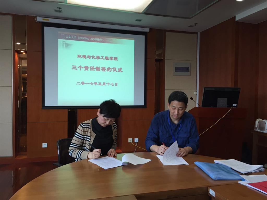 会上,党委纪检员、副书记王宇华结合了《环化学院廉政风险防控方案》出台的背景,对廉政风险防控等重点领域和关键环节、各分管责任人的党风廉政责任进行了解读。随后,学院党委与分管领导、各系所领导分别签署了“三个责任制”工作的相关责任书、承诺书及项目书,明确了分工职责和任务,从而形成党委抓、书记抓、责任部门抓,一级抓一级、层层抓落实的工作机制,为学院的可持续发展保驾护航。