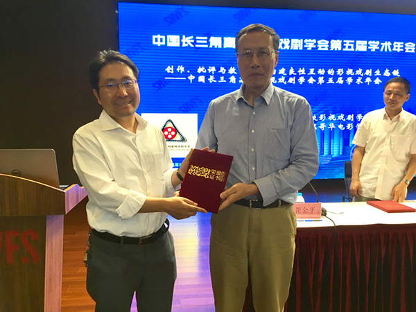 下午的分组研讨会上,各位专家、学者就各自的领域对影视戏剧学科的发展及面临问题、解决之道进行了深入的探讨。年会闭幕式上,中国长三角高校影视戏剧学会会长周斌向上海温哥华电影学院常务副院长刘海波授予学会影视产业专委会主任的聘书。