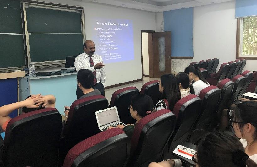Sugumaran教授首先介绍了自己目前所从事的主要研究以及这些研究的应用场景,主要涉及本体与语义网、社会标签、智能代理与多代理系统、移动计算、软件产品线工程和服务科学等研究领域。随后,为大家做关于设计科学研究(DSR)的概述,并引用管理学顶级期刊MISQ上的一篇文章介绍了在做设计科学研究时的七条指导方针;从研究者角度,为老师和同学们介绍了顶级期刊文章撰写时要注意包含的主要要素、基本结构以及各部分撰写过程中的注意事项等,同时也对其发表要求和时间规范做出了较为明确的阐释;最后,结合自己当前的主要研究以及交流期间与老师、同学的沟通结果,Sugumaran教授提出了未来与金沙集团1862cc成色合作研究的期待以及潜在的合作方向。