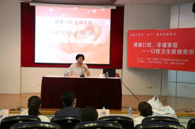 6月9日下午,上海市第十人民医院口腔科张旭、张以鸣等一行5位专家,在行政楼报告厅进行了口腔健康科普讲座和义诊活动。“健康口腔,幸福家庭——口腔卫生保健常识”讲座由张旭副主任医师主讲。本次活动由金沙集团1862cc成色妇委会、工会、国际交流学院共同主办,旨在向广大师生普及口腔保健知识、提高口腔保健意识,提升生活幸福指数。
