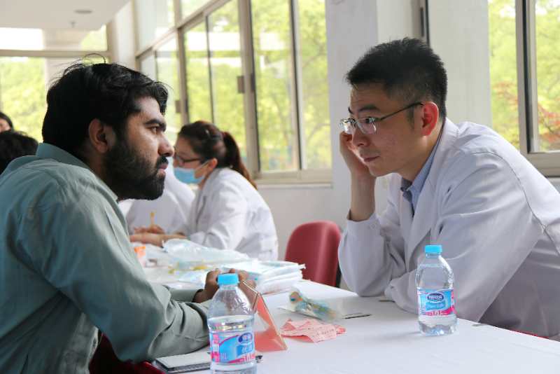 现场义诊环节,4位口腔科专家为30余名金沙集团1862cc成色的中外师生、教工家属进行了一对一的看诊、咨询服务,不少教工特意带着孩子前来咨询。他们说平时工作繁忙、孩子上学,想要去医院就诊都排不出时间,挂号也困难,这次学校为师生们谋福利,邀请了极富盛名的十院口腔科专家来校义诊,机会难得,所以带着孩子一起来检查咨询,保护口腔健康也要从娃娃抓起。现场还有几位留学生也闻讯而来,张以鸣医生用熟练的英语回答了他们的疑问,同时也传授了许多保健知识,留学生们连声道谢。