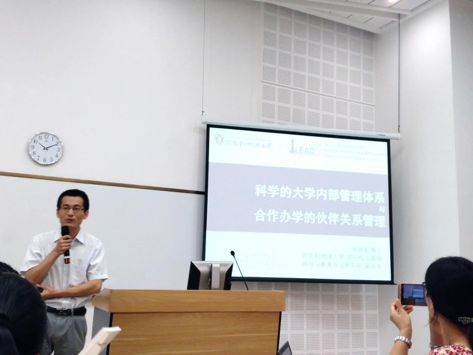上午十点,西交利物浦大学领导与教育前沿研究院副院长张晓军博士致欢迎辞,并就“国际大学的治理和伙伴关系建设”做主题分享。从外部治理体系到内部管理架构出发,以比较的视角讨论治理和伙伴关系建设的问题,以及分享西交利物浦大学的管理体系、管理技术和行为规范。通过对于西交利物浦大学的具体分析,给大家直观真切的感受与体会。