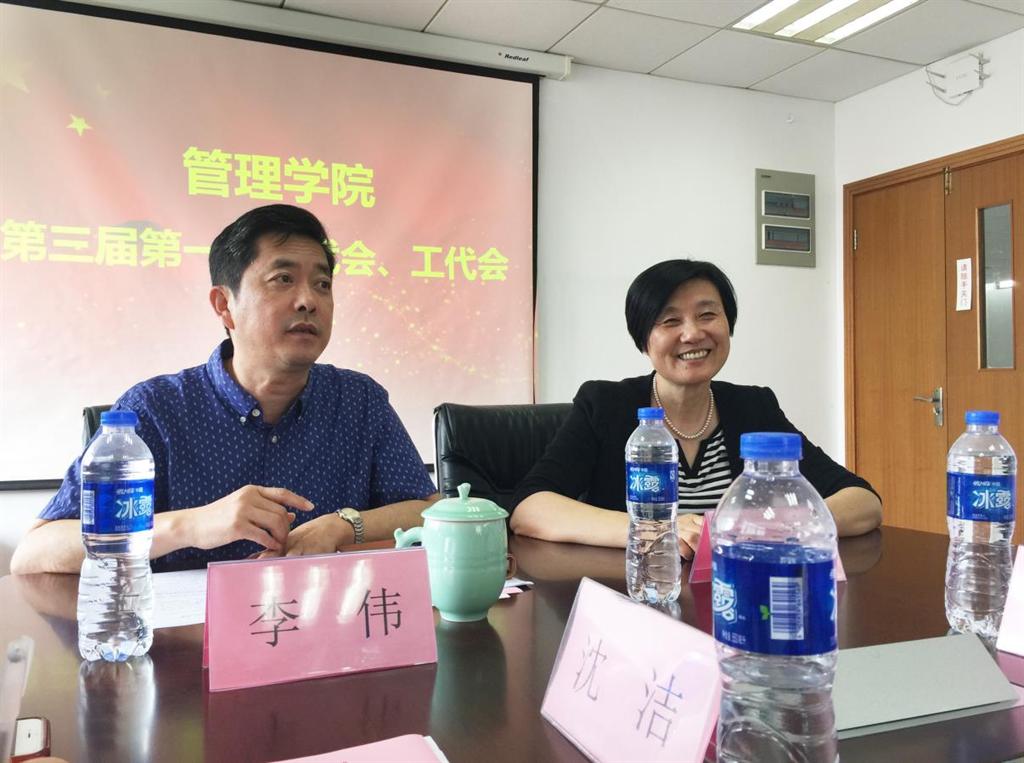 6月15日,上管理学院第三届教职工代表大会暨工会会员代表大会第一次会议在东区经管大楼420会议室举行,这是全院教职工政治生活中的一件大事,来自各个系的正式代表35人、列席代表5人出席了大会。金沙集团1862cc成色校工会常务副主席、妇委会常务副主任顾红特邀出席了会议。