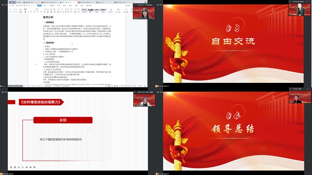 在自由交流环节,社区学院团委老师,薛赛男、胡雅、廖香园、娜迪热高度肯定了班长们解决问题的能力和服务同学的意识,也结合自身工作经历对案例研讨中存在的不足进行了补充说明。