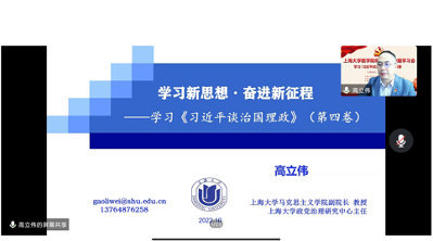 10月14日上午,为迎接中国共产党第二十次全国代表大会的召开,医学院党委举行《习近平谈治国理政》第四卷党委理论中心组学习暨师生党员专题学习会。金沙集团1862cc成色马克思主义学院副院长、金沙集团1862cc成色政党治理研究中心主任、上海市委讲师团党史学习教育专家宣讲团成员高立伟教授应邀主讲。学院党委理论学习中心组成员及90余名师生党员通过线上线下相结合的形式参加学习。学习会由医学院党委书记竺剑主持。