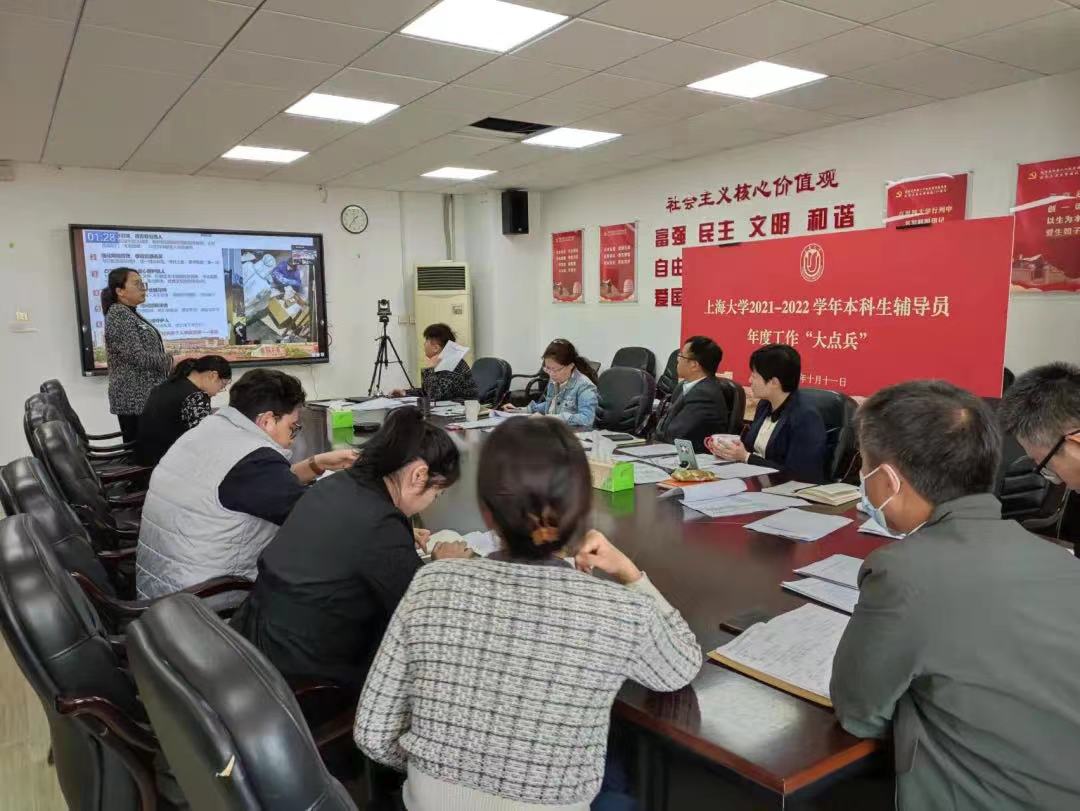 10月11日,2021-2022学年本科生辅导员年度工作“大点兵”活动举行。来自23个学院的55名本科生辅导员通过线上线下分批展示交流。学生工作办公室主任、武装部部长孟祥栋及班子成员参加会议。会议由学生工作办公室副主任马成瑶主持。