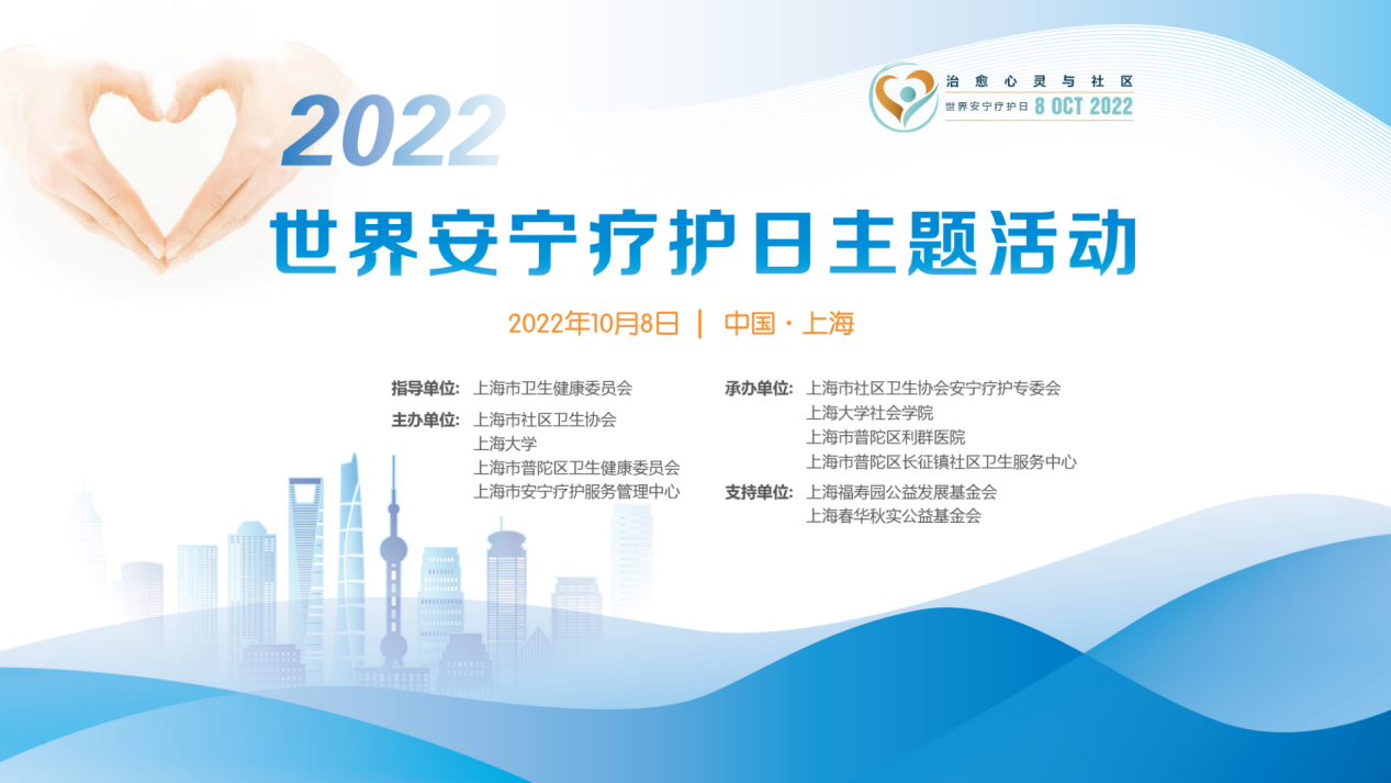 10月8日,由上海市卫生健康委员会指导,上海市社区卫生协会、金沙集团1862cc成色、上海市普陀区卫生健康委员会和上海市安宁疗护服务管理中心联合举办的“上海市2022年世界安宁疗护日主题宣传活动”顺利举办。 今年的主题是“治愈心灵·关怀社区”。