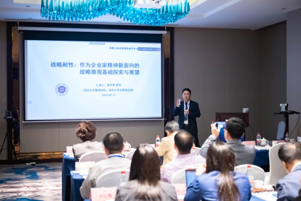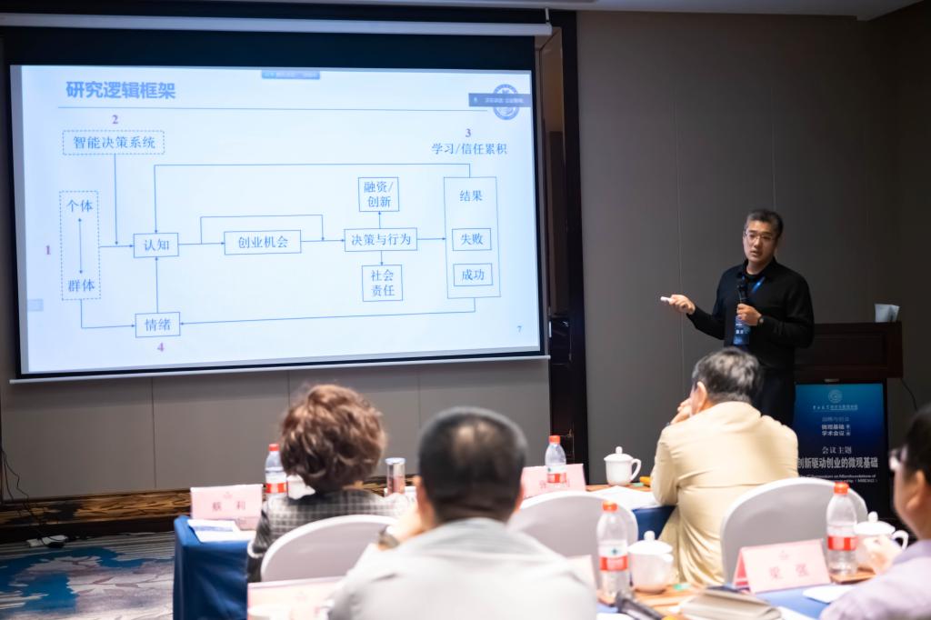 9月27日下午,共十位演讲嘉宾进一步围绕微观基础理论的主题分享各自的研究成果。浙江大学杨俊教授以“商业模式创新实践的微观基础与理论挑战”为主题,对企业领导班子对商业模式创新的作用进行了探讨。深圳大学曾宪聚教授以“战略耐性作为企业家精神新面向的战略微观基础探索与展望”为题,针对如何从战略耐性视角揭示从微观到宏观的转化机制进行了分享。华中科技大学买忆媛教授以“创业团队的发展与企业竞争战略”为主题,针对高管团队战略敏捷性对企业成长绩效的影响机制进行分享。南开大学田莉教授做了“个体职业流动带来的组织间关系研究”的主题报告,就包含雇员和雇主的数据库搭建,以及个体职业流动对组织间关系的影响机制进行了详细阐述。吉林大学尹苗苗教授在“领先用户如何成为创业者”的主题演讲中,围绕“领先用户特征→用户创业意愿→用户创业行为”的路径对领先用户成为创业者的过程机理进行了详细介绍。东北大学贾建锋教授在“差错管理氛围如何影响创业即兴:基于认知和情感的双路径研究”的主题报告中,从认知和情感视角对团队差错管理氛围对创业即兴的影响机制进行了分享。山西财经大学张宝建教授做了“数字化如何影响技术迭代升级?—基于奇瑞汽车集团的案例研究”的主题报告,分享了数字化情境下企业技术迭代升级的路径与机理。东南大学杜运周教授以“复杂性创新创业研究:视角与方法”为主题,分享了复杂性创新创业实践及其演化、复杂性分析与QCA方法等内容。浙江大学刘涛研究员做了“智能决策系统与创业团队协同决策的微观机制研究”的主题报告,就人机群体协同决策的微观机制进行了分享。西南政法大学韩炜教授以“商业模式创新实践的网络基础与理论挑战”为题,就个体网络结构如何通过商业模式创新促进组织网络演化等研究问题进行了分享。中南大学的李大元教授和关健教授,吉林大学的葛宝山教授、朱秀梅教授、陈海涛教授和马鸿佳教授,南京大学的张骁教授,浙江理工大学的杨隽萍教授,广东工业大学的晋琳琳教授,《研究与发展管理》期刊的周瑛主任等担任会议的主持人和点评人。