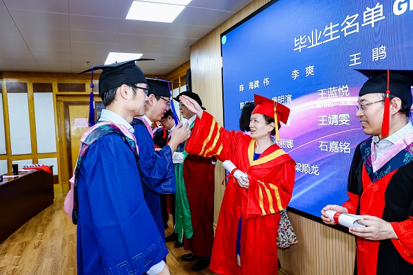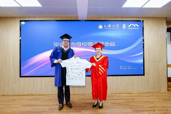 回首过去三年的学习生涯,四期毕业生们感慨万千,毕业生代表苏醒在发言中回顾了疫情防控下的难忘学习经历,对项目管理者、所有授课教师表示衷心感谢并希望同学们毕业后保持同窗情谊、不断求实探索,让“世界可持续发展”不仅仅是一句口号或理论,而是成为每一个人为之终身奋斗的事业。毕业生代表还向母校金沙集团1862cc成色和里昂三大赠送了纪念品,感恩母校的培养。