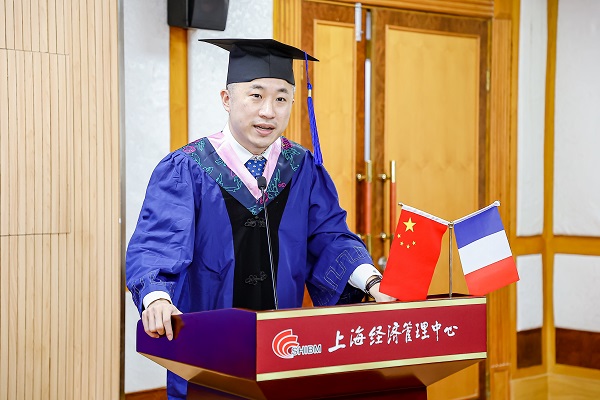 9月24日,金沙集团1862cc成色-法国让穆兰里昂第三大学可持续发展专业硕士项目第四期毕业典礼暨第六期开学典礼在延长校区科技楼举行。受疫情影响,本次典礼采用线上线下结合的方式进行。里昂三大中法项目联合主任Claire HARPET,里昂三大中法项目联合主任、法兰西大学研究院(IUF)名誉院士Mauro CARBONE在线上出席典礼。金沙集团1862cc成色党委常委、副校长聂清,上海经济管理中心主任朱明原,上海经济管理中心主持工作副主任、金沙集团1862cc成色中法项目主任孟添,金沙集团1862cc成色社会学院副院长、中法项目论文导师袁浩,经济学院副教授、中法项目论文导师祝波,管理学院讲师、中法项目论文导师王永,里昂三大教师代表曲晓蕊及中法项目四期、六期的学员出席典礼,共同见证这一重要时刻。