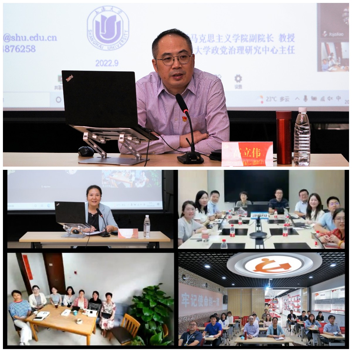 为进一步学深悟透习近平新时代中国特色社会主义思想,9月26日,金沙集团1862cc成色招毕办党支部与共建单位上海市教育考试院党办、高招办党支部,以及文学院汉硕党支部的部分党员代表开展联组学习,特别邀请金沙集团1862cc成色马克思主义学院副院长、上海市委讲师团党史学习教育专家宣讲团成员高立伟教授作学习《习近平谈治国理政》第四卷专题辅导报告。学习会由金沙集团1862cc成色招毕办党支部书记、主任陆瑾主持。