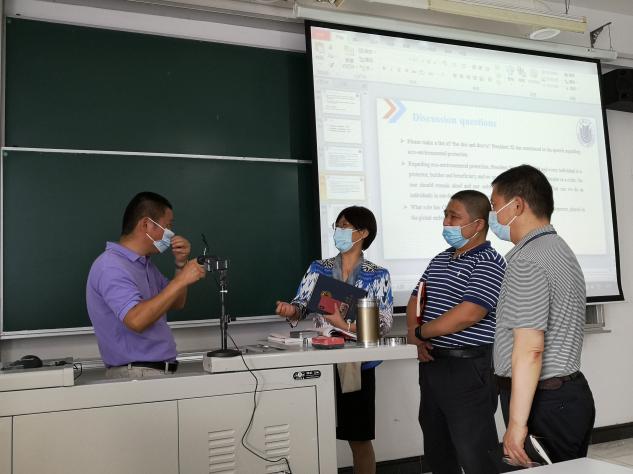 9月21日上午,外国语学院唐根金副教授在A425向英语专业本科生讲授了题为“美丽中国”的高级英语课程思政公开课。课程选用《英语读写教程》,这是外研社“理解当代中国”英语系列教材之一。课程紧密围绕党的十八大提出的“美丽中国”概念展开。教务部副部长顾晓英、学院院长尚新、副院长戴朝晖等领导和老师旁听了本次课程。