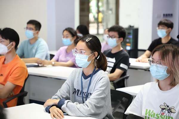 交流会上,袁铭老师从“党建引领、师生共同体、生涯导航、安全保障”四个方面做了主题党课分享。袁老师重点强调了党史学习教育的重要性,党史学习教育是砥砺初心使命的“磨刀石”,并为同学们讲述了金沙集团1862cc成色红色校史。他指出,了解学校红色历史、传承红色基因是每个上大青年的责任,要牢记金沙集团1862cc成色“自强不息;先天下之忧而忧,后天下之乐而乐”的校训精神,把“赓续红色基因”作为历史使命和时代责任,把青春绽放在为集成电路事业的奋斗征程上。袁老师还介绍了学院党支部设置,党史学习教育与学科专业、园区思政、导学关系的融合情况。同时,袁老师表示,学校与学院一直致力于构建师生成长共同体,引育学生在产业一线学真知、长本领,并通过行业参观、企业实训、产业讲座等方式积极为学生提供生涯规划指导。为强化同学们的安全意识,袁老师还结合案例,从疫情防控、防网络诈骗等方面与同学们作了交流。