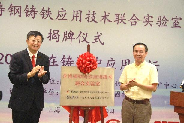 接着,中国铸造协会会长张立波教授和钢铁研究总院副总工程师杨才福教授级高工共同为联合实验室揭牌,宣布含钒铸钢铸铁应用技术联合实验室正式成立。