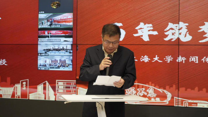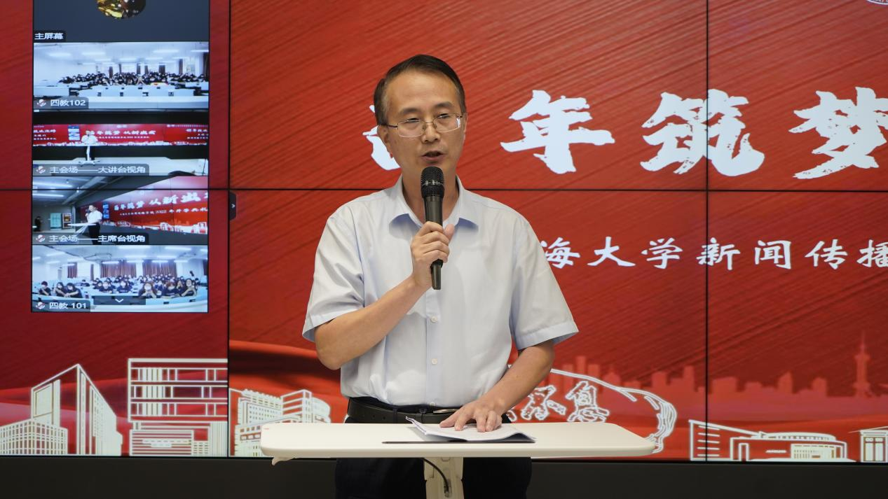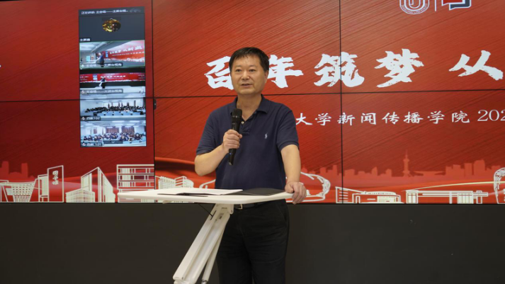 典礼伊始,新闻传播学院党委书记王晴川代表学院向各位新加入新闻传播学院的同学表示最诚挚的欢迎和祝贺。2022年恰逢金沙集团1862cc成色建校一百周年,站在这一重要的时间节点,他希望同学们以成长为具有家国情怀、国际视野的高素质全媒化复合型专家型新闻传播后备人才为目标,以讲好中国故事传播好中国声音为使命。他勉励同学们,时代就在眼前,一代人有一代人的际遇,一代人也有一代人的奋斗。新的征程已经开启,期待同学们秉承“自强不息”“先天下之忧而忧,后天下之乐而乐”的校训精神,将自己锻造成报效祖国、服务人民的时代栋梁。