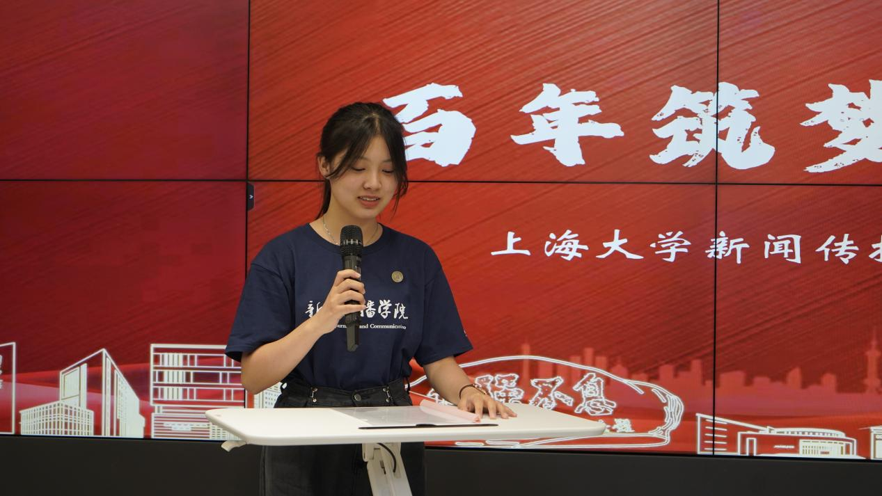 典礼上,新生代表也与大家一起分享了他们的感受。2021级新闻学专业的万世洁代表所有本科分流新生表达了进入新闻传播学院学习的喜悦之情。专业分流期间,她也曾因为“新闻无学”等言论而倍感迷茫,但仍选择遵从自己的内心。暑假时她采访了烈士遗孀、红军后代,在这样的采访中,她以守护者和传播者的角色进入历史,记录历史,见证历史,这更加坚定了她从事新闻工作的决心。她希望自己能够在深度媒介化的今天坚守专业力量,在时代变局中激浊扬清,在纷繁细琐中探寻真相,守望社会,守护良知,传递真善美。