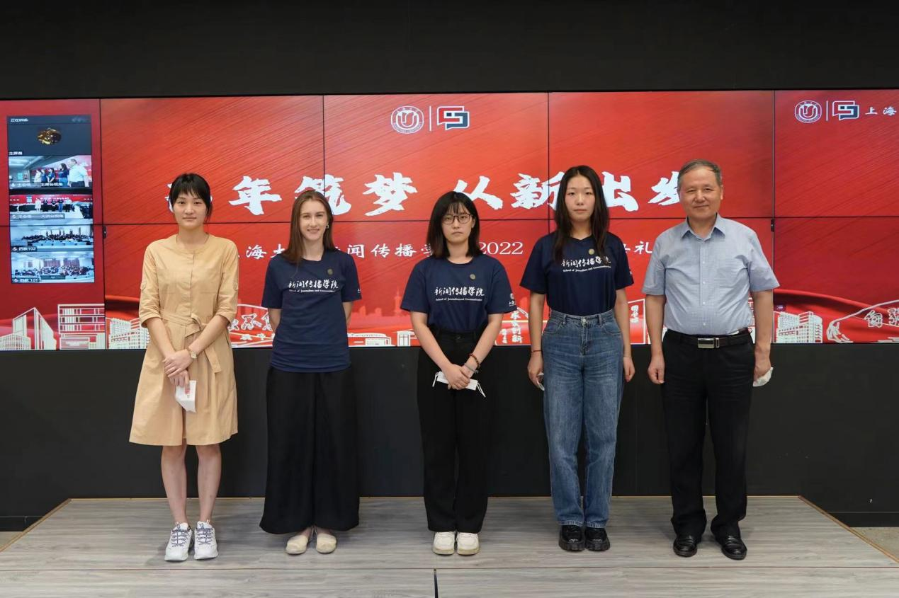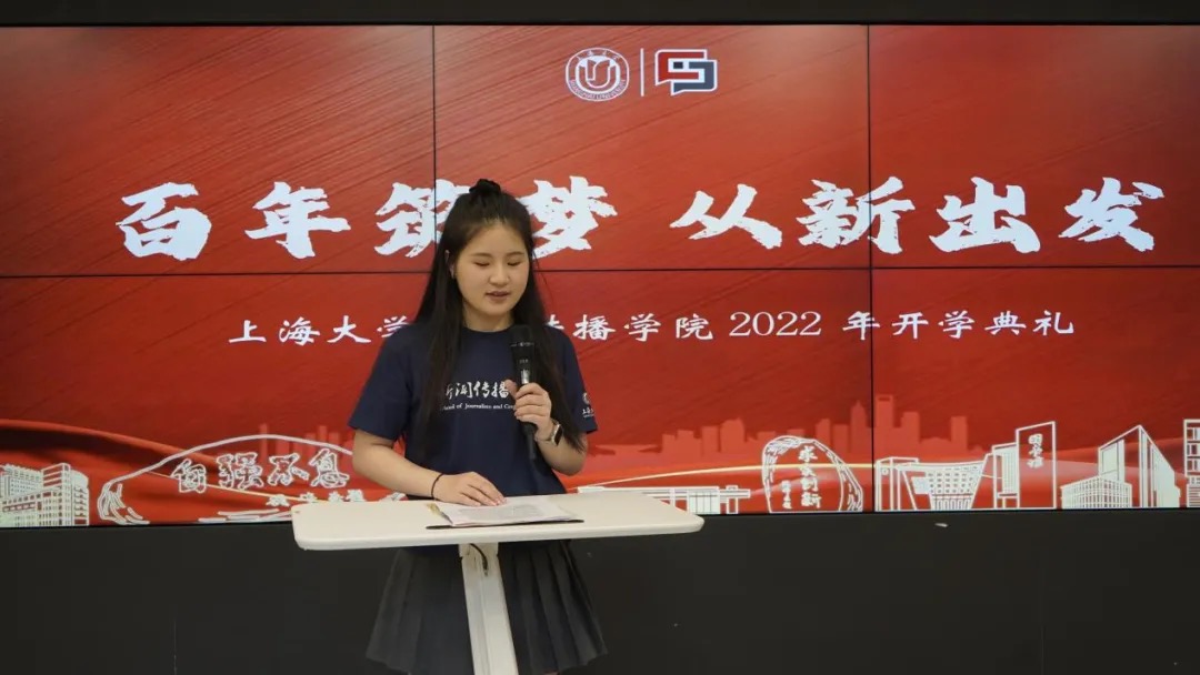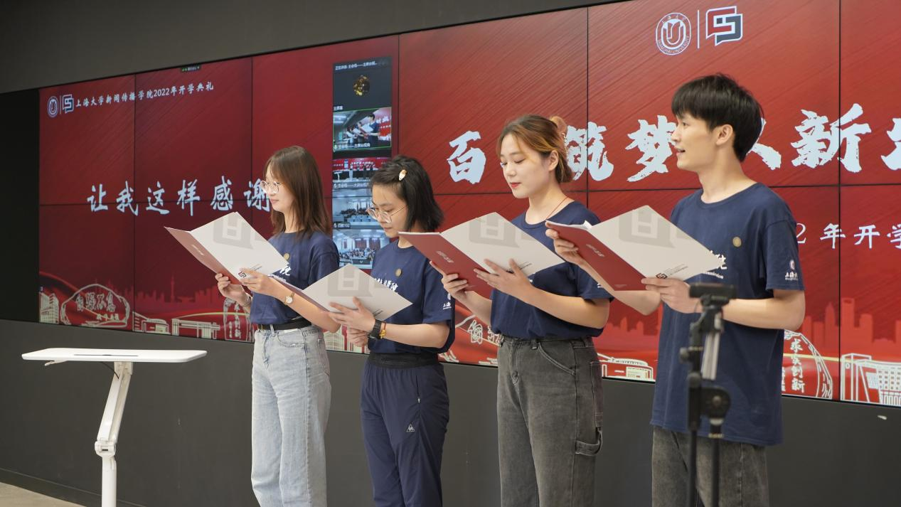 求学追梦的路上离不开老师们启迪心灵的谆谆教诲。学院老师们的一路陪伴与关爱,更是感动着每一位上大新传人。开学典礼上,本硕老生万涛、马家骏、王聂珺、汪欣颖代表学院全体同学向敬爱的老师们献上朗诵《让我这样感谢您》,以表达大家心中最诚挚的感谢。
