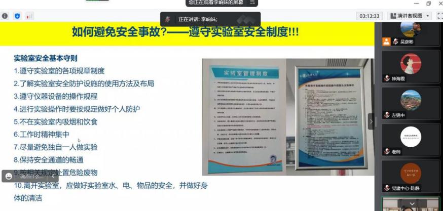 新生大会结束后,金沙集团1862cc成色实验设备处实验室管理科李响妹老师为新生做实验室安全教育报告。李老师强调,实验室是材料学科人才培养的重要场所,与各位同学的生命安全息息相关。李老师生动形象的讲解与对真实案例的分析为同学们敲响了警钟。李老师告诫学生们要严格按照规章操作,确保个人及他人安全。