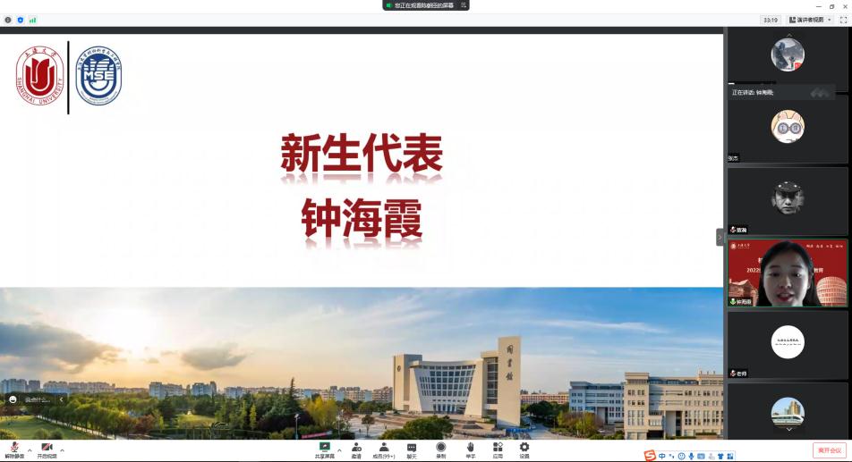 作为刚步入研究生阶段的新生代表,钟海霞表达了对研究生生活的向往以及对未来各种挑战的期待,并发出“作为上大人,我们当胸怀天下,矢志报国,以科研创新为己任,以学术报国为目标;作为材料人,我们当以创新为源,勇于实践,积极投身各类科研实践,经风雨、受教育、长才干;作为自己,我们当不忘初心,逐梦远航”的青春宣言。