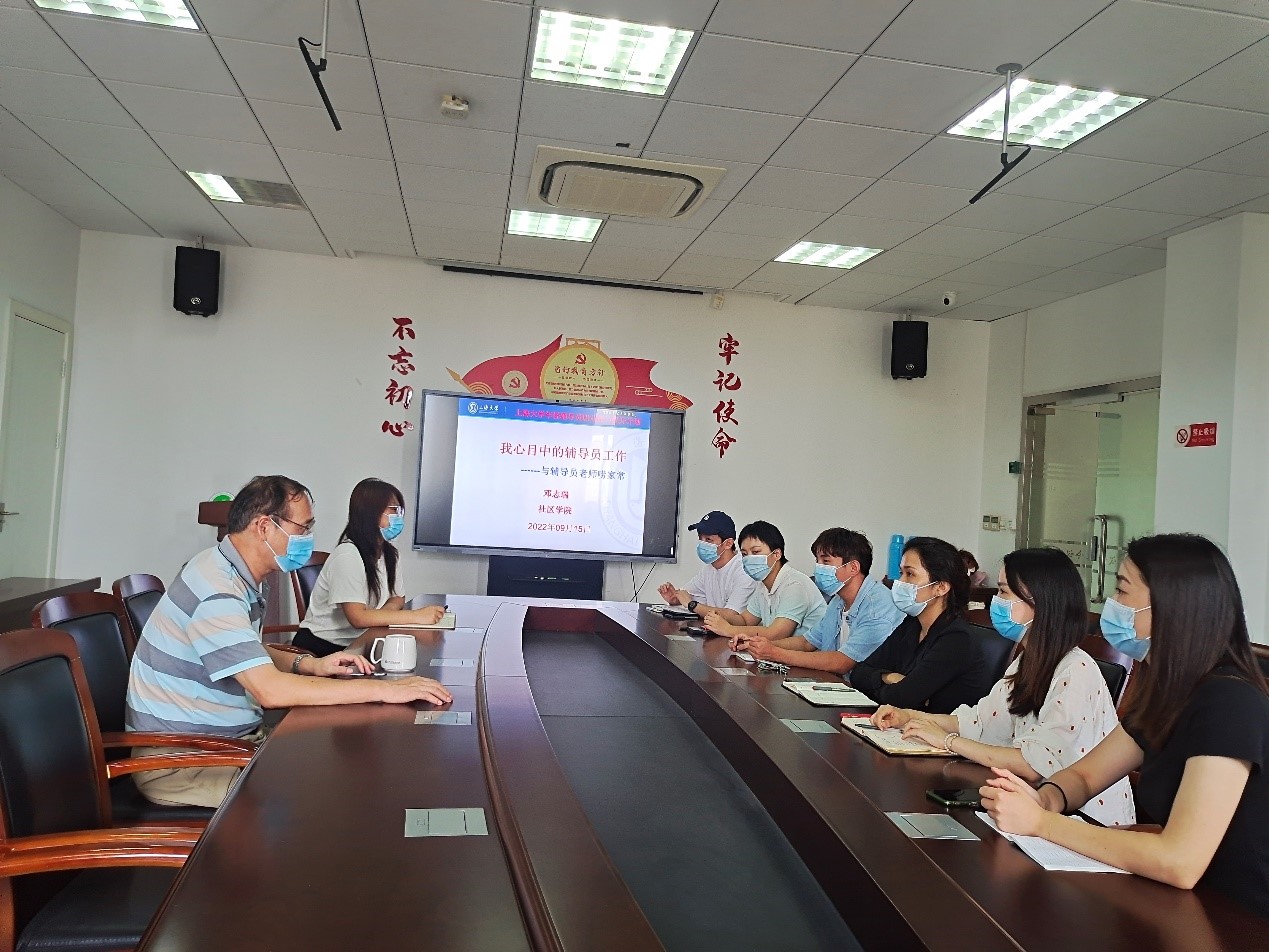 9月15日下午,社区学院新入职辅导员专题培训交流会在社区学院403会议室举行,社区学院党委书记邓志瑞用“唠家常”的方式,以“我心目中的辅导员工作”为主题给近两年入职的辅导员和专业学院派驻辅导员面对面做了深入细致的交流,学院党委副书记、副院长佟丽宁主持交流会。
