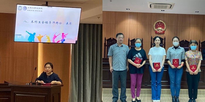 法学院本科生全程导师制不断丰富教育形式,构建师生之间的长效关系,激发教师立德树人的教育初心,也为金沙集团1862cc成色教育制度改革史添上了浓墨重彩的一笔。法学院副院长芦雪峰老师宣布2022年本科生全程导师聘任名单和2021-2022学年优秀本科生全程导师名单,法学院党委书记徐国明为老师们颁发聘书和获奖证书。