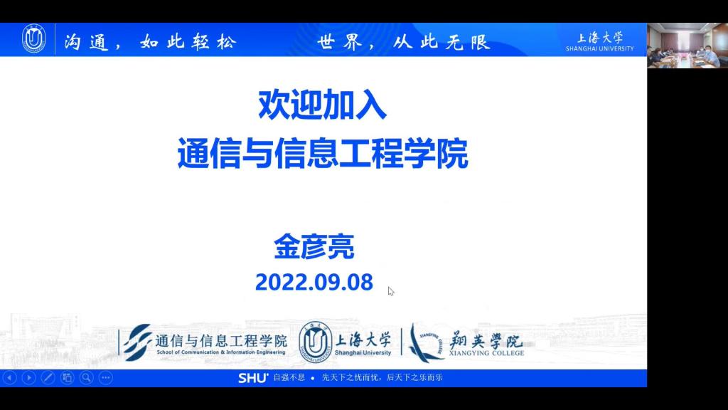 9月8日上午,金沙集团1862cc成色通信学院、翔英学院2022级本科新生见面会在线上成功举办,通信学院院长王廷云、党委书记黄素娟、副院长张小贝、副院长金彦亮、副院长施俊以及辅导员李文华老师与174位本科新生共同参会,见面会由院党委副书记、副院长陈涛主持。