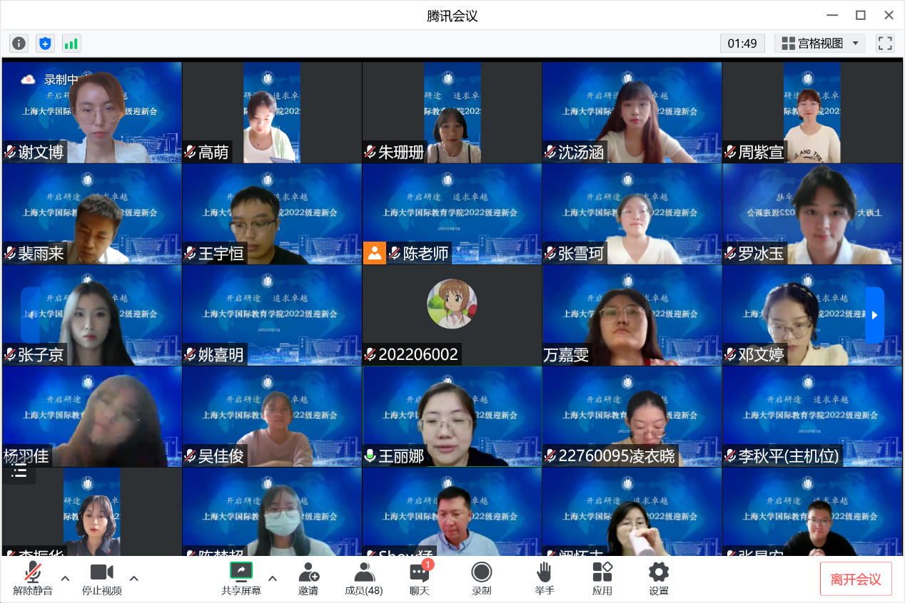 为了帮助新同学更好地适应金沙集团1862cc成色的学习生活,明确方向,开启人生新篇章,金沙集团1862cc成色国际教育学院于9月5日下午通过线上视频会议的形式举行了2022级研究生迎新会。国际部党委书记王丽娜,国际部党委副书记,国际教育学院副院长陈秀猛,国际教育学院副院长裴雨来,全体研究生导师,来自全国各地的23名中国学生,以及来自乌兹别克斯坦、泰国、老挝、利比里亚的6名国际学生齐聚一堂。学院教学秘书陈颖、研究生辅导员谢文博主持会议。