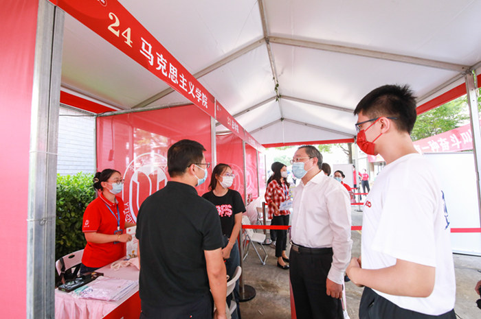 9月6日-7日,2022级思想政治教育本科生同学们怀着激动的心情,也陆续踏入了上大的校园,来到秋白书院--马克思主义学院的点位报到。9月6日下午16点左右,金沙集团1862cc成色党委书记成旦红在相关职能部门负责人的陪同下来到马院迎新现场,实地了解新生报到情况,成书记对马院的各项迎新工作给予了充分肯定,并在现场与新生李萌进行亲切交流,他向李萌同学提及,马克思主义学院是第一学院,思想政治教育专业未来就业前景颇佳,希望新生们未来在马院能够刻苦学习,成就自己的人生。