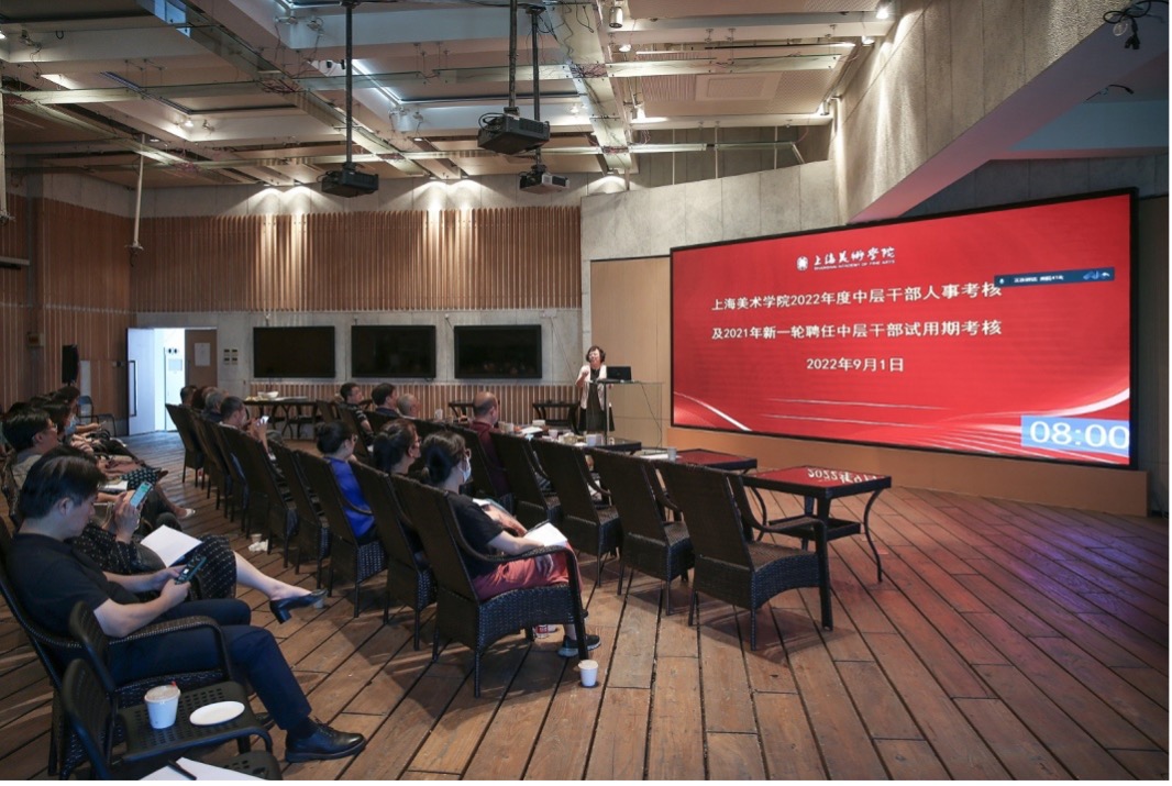 9月1日上午,金沙集团1862cc成色上海美术学院在学院418室召开2022年度中层干部述职考核会及新一轮聘任中层干部试用期考核会。会议由学院党委书记陈静主持,学院领导班子成员、全体中层干部、科级干部及教师代表参会。