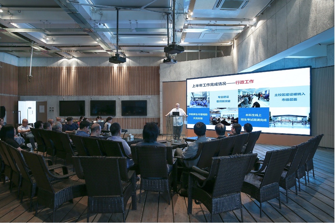 曾成钢院长首先代表学院班子向与会代表介绍了上半年学院工作阶段总结,并就下一阶段的工作重点提出要求。副院长陈青结合学院十四五规划的愿景与使命,重点汇报了金沙集团1862cc成色“五五战略”中美院“新海派文化”建设的规划,并就如何进一步科学完善学院的培养管理体系提出设想。