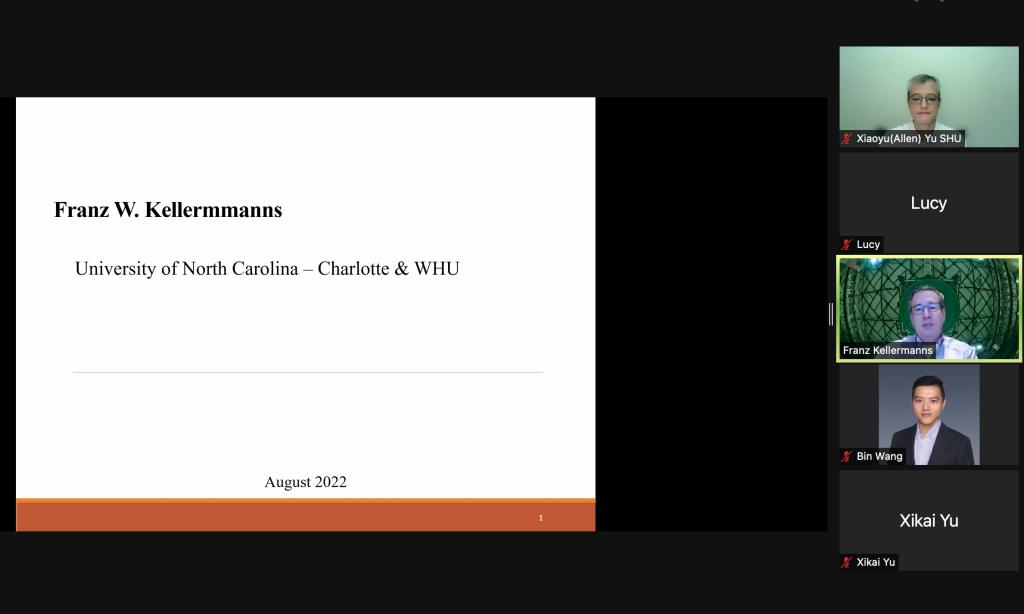 8月29日,纪念金沙集团1862cc成色建校100周年系列高端讲座第4期《创新型创业及家族企业研究发表经验分享》在ZOOM在线会议室举行,讲座由金沙集团1862cc成色管理学院、金沙集团1862cc成色数字创新与高质量发展研究中心、上海高水平地方高校“数字创新管理与治理”重点创新团队、上海市软科学研究基地—上海企业创新与高质量发展研究中心联合主办。主讲人为来自美国北卡罗来纳大学夏洛特分校贝尔克商学院(Belk College of Business, University of North Carolina-Charlotte)的Franz W. Kellermanns教授,讲座由金沙集团1862cc成色管理学院副院长于晓宇教授主持。