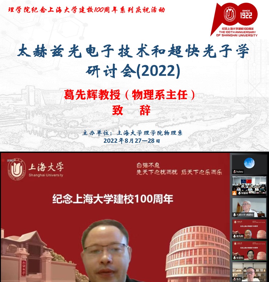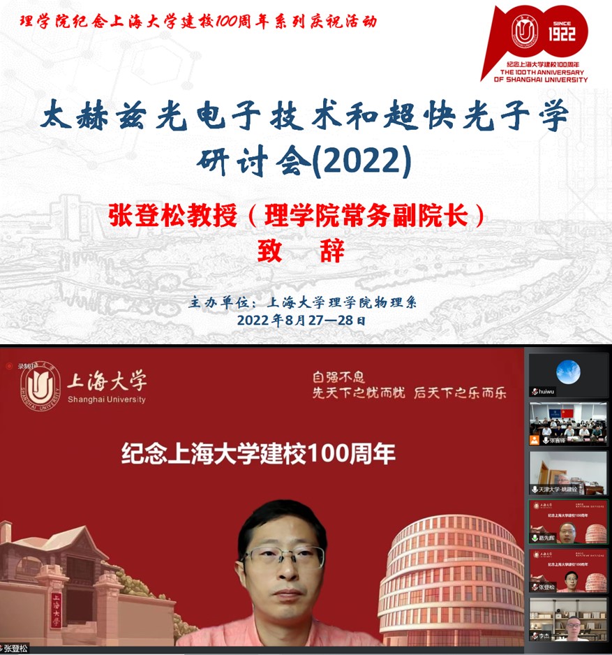 溯源初心恰风华,百年传承再出发。理学院纪念金沙集团1862cc成色建校100周年系列学术活动之一,2022年全国太赫兹光电子技术和超快光子学研讨会于8月27 -28日在线上成功举行。来自国内高校和科研院所的19位知名专家、学者为广大师生带来了精彩纷呈的前沿学术报告。本次研讨会的举办旨在加强物理学科太赫兹光电技术和超快光子学的学术交流和前沿合作,以助推学科建设和人才培养,促进物理学科相关领域新的发展。