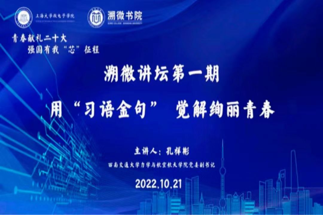 为激励广大青年在实现中华民族伟大复兴进程中贡献智慧力量、展现青春风采,10月21日,溯微书院溯微讲坛第1期通过线上线下的方式顺利举行。讲坛以青春献礼二十大,强国有我“芯”征程为主题,邀请教育部第二课堂课程设计展示活动一等奖获得者、西南交通大学力学与航空航天学院党委副书记孔祥彬作《用“习语金句”,觉解绚丽青春》的主题报告,金沙集团1862cc成色教务部副部长、教育部课程思政示范中心(金沙集团1862cc成色)负责人、上海高校思政课名师工作室顾晓英教授作为报告会嘉宾出席了此次报告会。微电子学院党委副书记、副院长,溯微书院执行院长袁铭主持报告会,溯微书院2021、2022级同学线上线下同步聆听了报告。这次报告也是原动力红色文化育人辅导员工作室的系列活动之一。