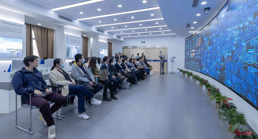 师生一行首先参观了城市运营数字化管理中心,在工作人员的讲解下,通过数字大屏上的实时数据,直观了解城市运营、智慧管养工作。城市运营集团高效、精细的数字化治理水平给大家留下了深刻印象。