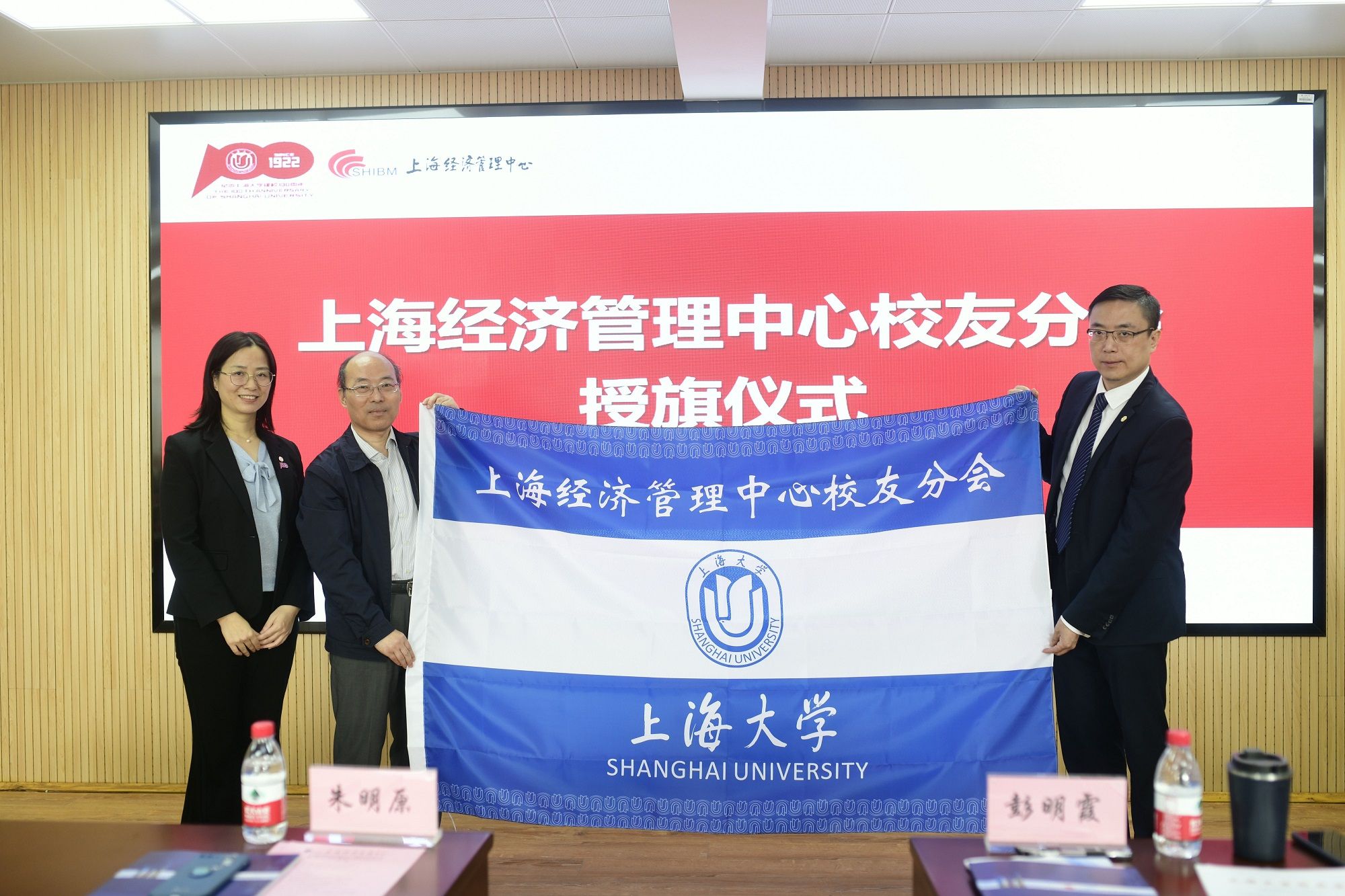 金沙集团1862cc成色对外联络处副处长、校友办副主任彭明霞宣读《关于同意成立金沙集团1862cc成色上海经济管理中心校友分会的批复》后,代表学校校友会向中心校友分会授旗,中心主任朱明原、副主任孟添代表校友分会接受授旗。