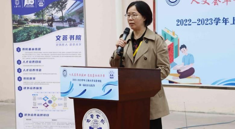 文荟书院学生自我管理委员会主任苏雨柠同学作为自管会代表进行发言。她强调了社区对大学生的培养和发展起到的重要作用,充实的社区活动是大学生良好生活习惯、昂扬精神面貌和高度政治思想觉悟的重要体现。社区文化节是加强学院思想政治教育与全面育人的重要创新。随后,她详细介绍了文荟书院学生自我管理委员会的组成架构和建设目标,表示学生自我管理委员会将在形式多样、内容丰富、交叉互动的学生活动中以“家文化”感召每一位同学,由内而外带动整个校园文化建设蓬勃发展,促进社区精神文明建设。