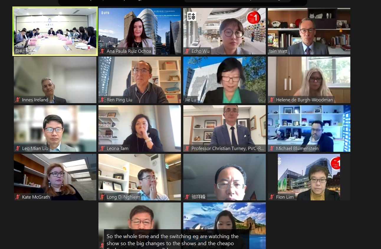 11月1日北京时间上午10点,金沙集团1862cc成色与悉尼科技大学战略发展委员会第六次会议线上线下同步举行。金沙集团1862cc成色党委副书记欧阳华,学校国际部、研究生院、科研管理部和悉尼工商学院相关负责人以及相关科研合作团队负责人出席了会议。悉尼科技大学副校长(国际事务)Iain Watt、副校长(科研)Kate McGrath等16位代表参加了会议。