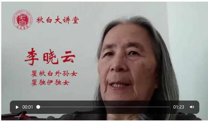 秋白书院是以中国共产党早期领导人、金沙集团1862cc成色教务长瞿秋白同志命名的书院。活动伊始,身在美国的瞿秋白外孙女李晓云女士发来视频寄语,对金沙集团1862cc成色在建校百年之际成立秋白书院表示祝贺和感谢。李晓云女士希望同学们珍惜当下,追求真理,勇于实践,继承和发扬老上大革命精神与秋白精神。